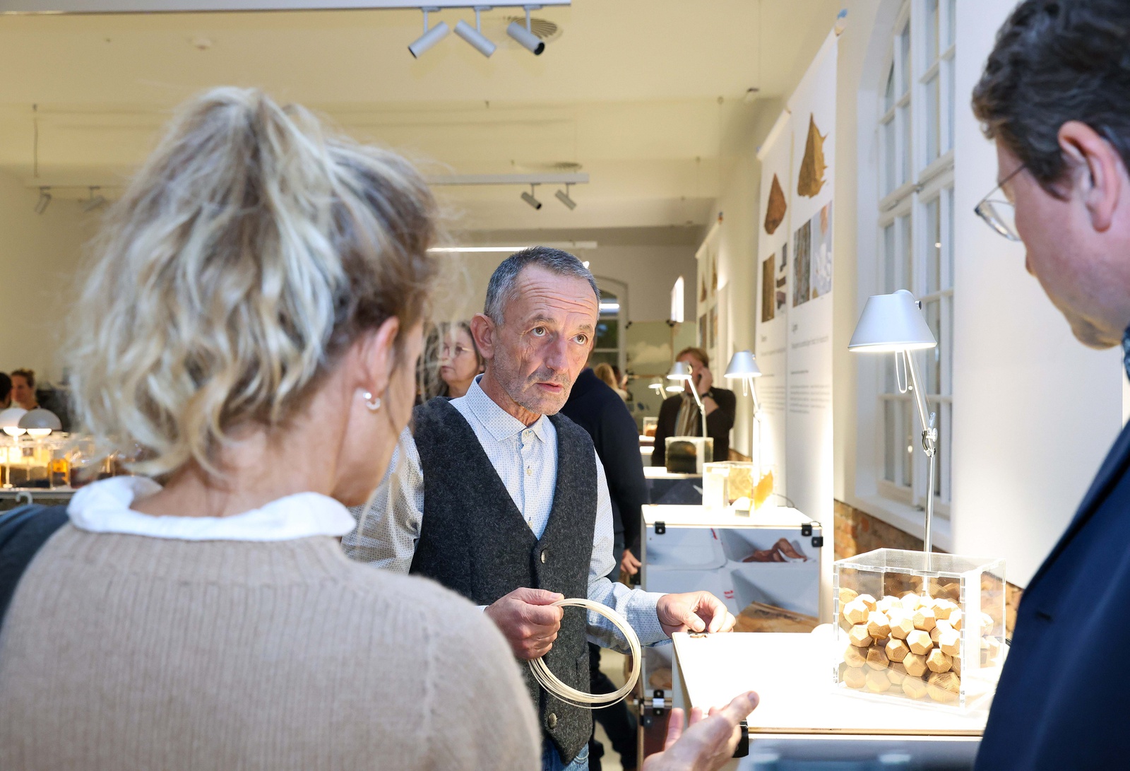 Gäste aus Kunst, Kultur, Architektur, Forschung, Wirtschaft und Design waren zur Eröffnung der Ausstellung „Circular Materials – Reststoff oder Rohstoff“ in Zusammenarbeit mit der FH Salzburg | Department Design & Green Engineering eingeladen .