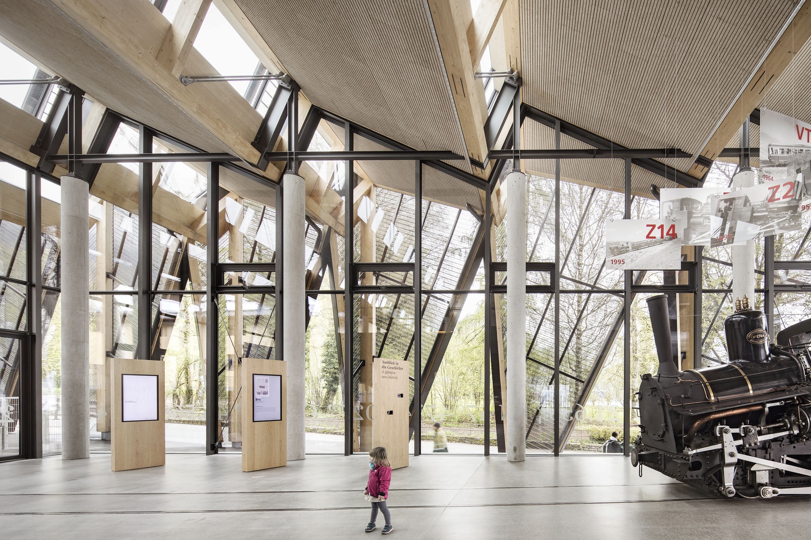 Die sheddachartige Konstruktion der neuen Talstation der Schafbergbahn erlaubt nicht nur einen großzügigen Blick in die Landschaft, sondern auch auf eine spannende Dimension des modernen Holzbaues.