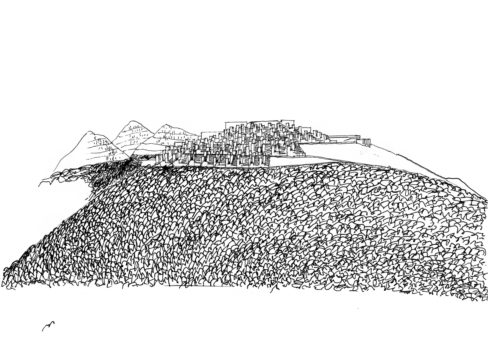 PRESSEMAPPE, PRESSEDer aus Salzburg stammende Architekt Gunther Wawrik (Jahrgang 1930) beschäftigt sich jenseits seiner konkreten Bauvorhaben seit vielen Jahren mit Entwürfen und Vorschlägen, die als Kritik an der baulichen Praxis unserer Tage zu verstehen sind. Aufgewachsen am Fuße des Gaisbergs war der Blick über das damals noch weitgehend unbebaute Salzburger Becken für Wawrik prägend. Befreit vom Realisierungszwang entwickelt er mit der Bergstadt einen Gegenentwurf zur Zersiedelung, zum Flächenfraß der ausufernden „Talstadt“. Die Bergstadt ist nicht für einen konkreten Ort geplant, sie ist vielmehr ein universelles Modell, das aus Texten, Skizzen und Plandarstellungen besteht. Sie ist eine auf die Zukunft gerichtete Fiktion, die als Gedankenexperiment aber nicht weniger real ist.