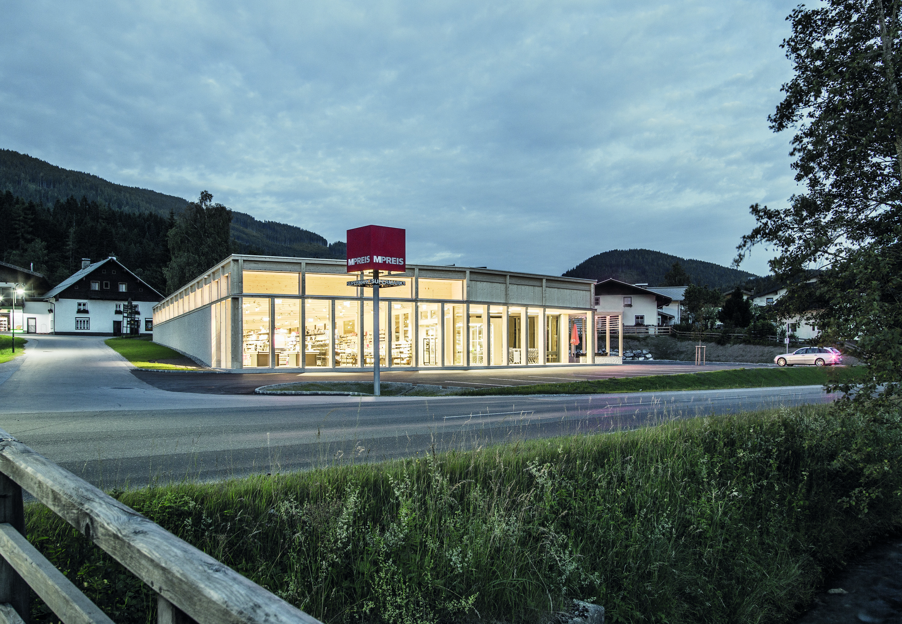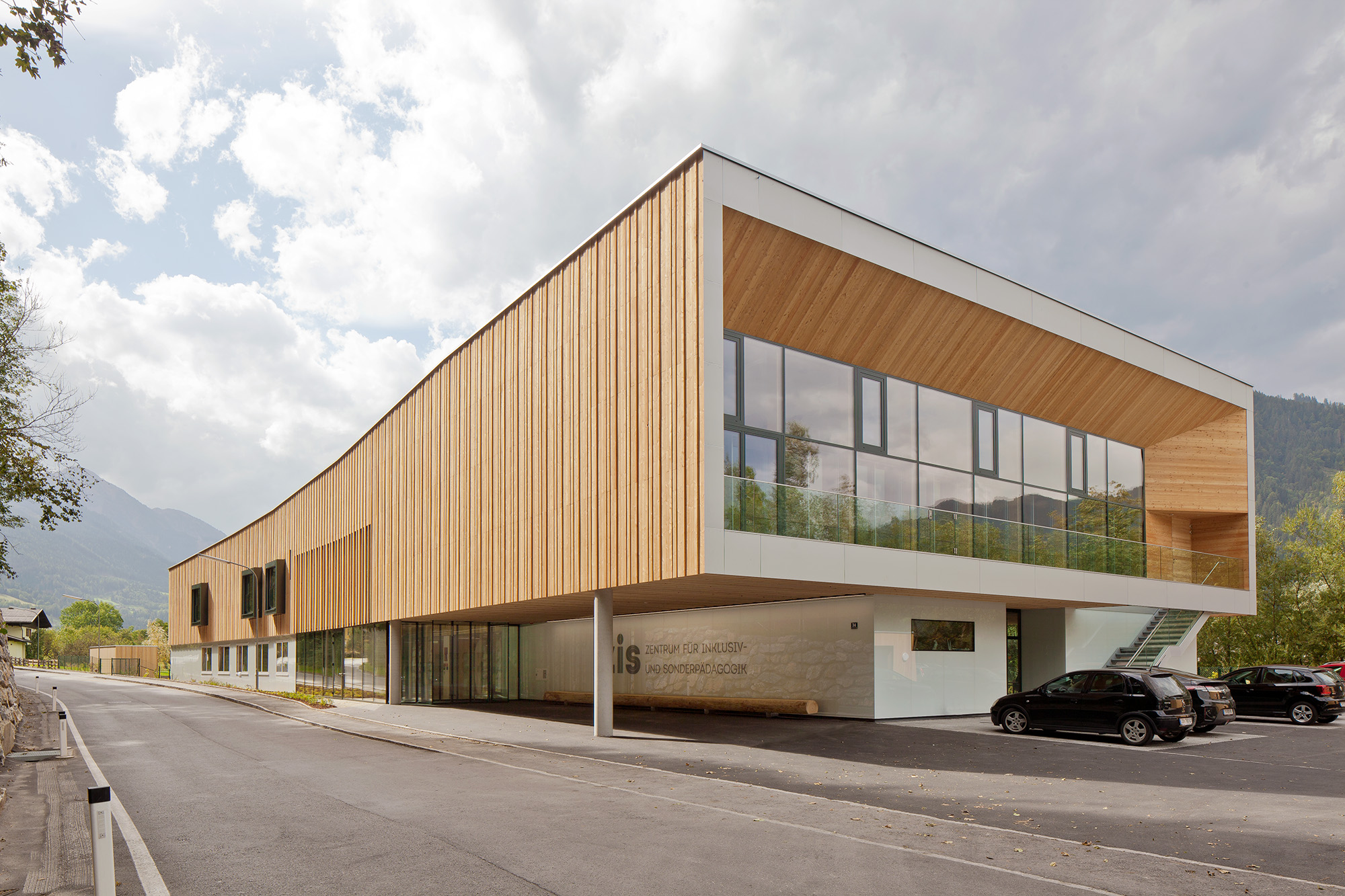 Auf dem Weg in den Pongau besuchen wir den weit gediehenen Umbau des Holztechnikums (HTK) in Kuchl. In moderner Brettsperrholz-Bauweise errichtet, ergänzt der Neubau den über Jahrzehnte gewachsenen Schulkomplex um eine zeitgemäße Facette. In Pfarrwerfen begegnet uns in „St. Cyriak“ ein Wohnhaus für ältere Menschen, das handwerklich feingliederig ausgeführt, harmonisch in den dörflichen Charakter des Ortes integriert ist. Zu Mittag – verbunden mit einer kleinen Pause – besichtigen wir den neuen Lebensmittelmarkt im Zentrum von St. Martin, der durch seine Materialien – Holz und Beton – und seine markante Tektonik den Ortscharakter prägt. Die sensible Aufgabe der Erweiterung eines historischen Friedhofes erwartet uns in Altenmarkt. Das in Sichtziegelbauweise ausgeführte Bauwerk besticht in jeder Hinsicht. Abschließend führt unsere Reise nach St. Johann, ins Zentrum für Inklusiv- und Sonderpädagogik. Mit Freiterrassen zur Salzach, stirnseitig angeordneten Loggien und nicht zuletzt einem lichtdurchfluteten Sportsaal im Obergeschoß bietet der kompakte Holzbau geschützte Räume für Kinder mit besonderen Bedürfnissen.