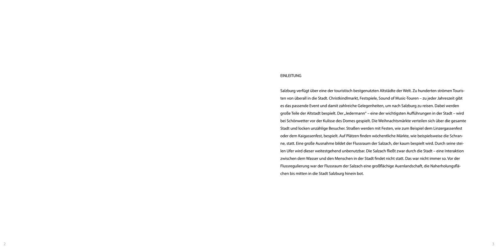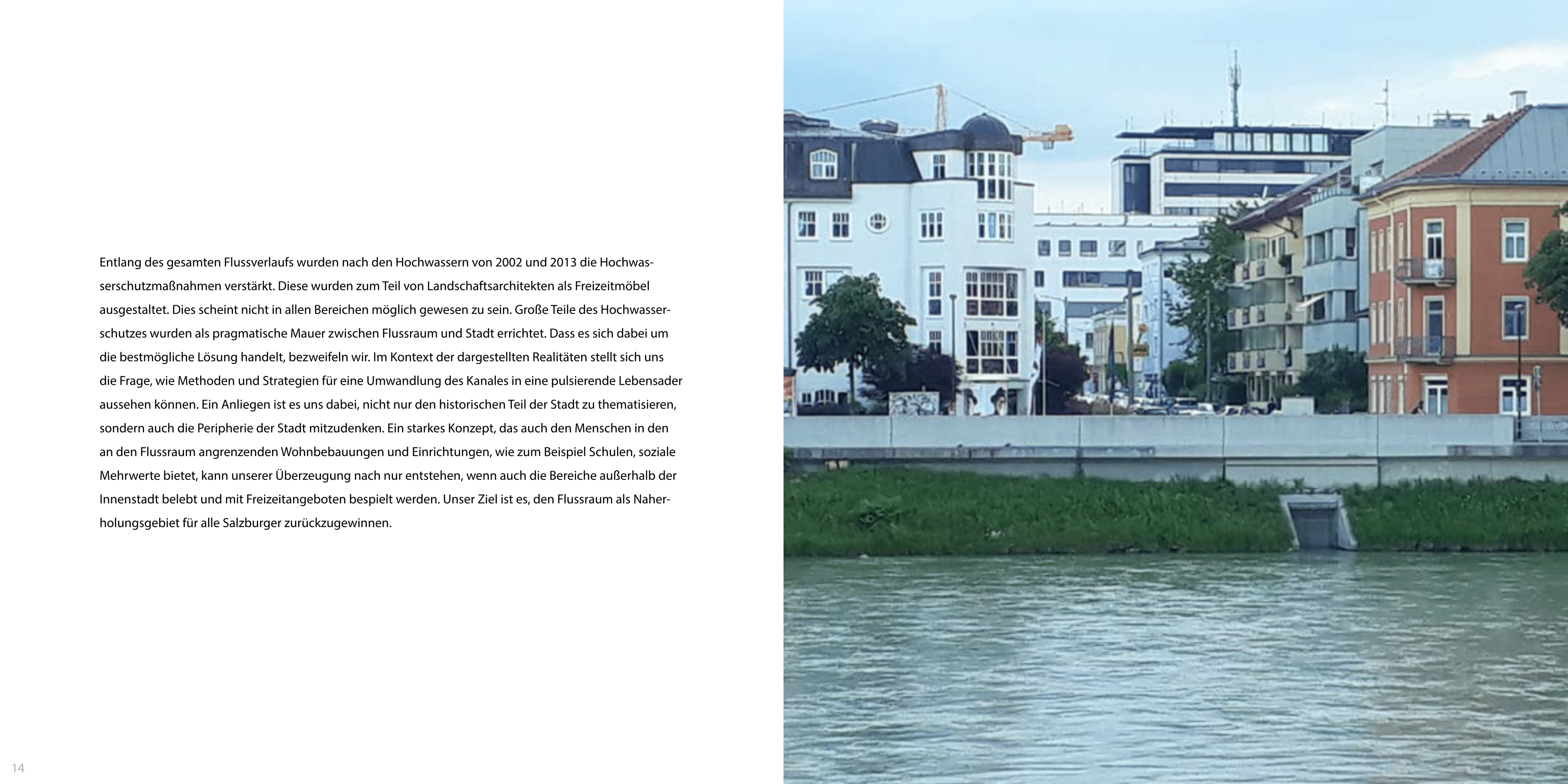 AusstellungDer Flussraum der Salzach birgt neben bestehenden Qualitäten, hohes Potenzial für städtebauliche Optimierungen. Horst Lechner und Lukas Ployer thematisieren in ihrer gemeinsamen an der Kunstuniversität Linz entstandenen Masterthesis, wie Methoden und Strategien zur Umwandlung des Flussraumes in eine pulsierende Lebensader aussehen könnten.