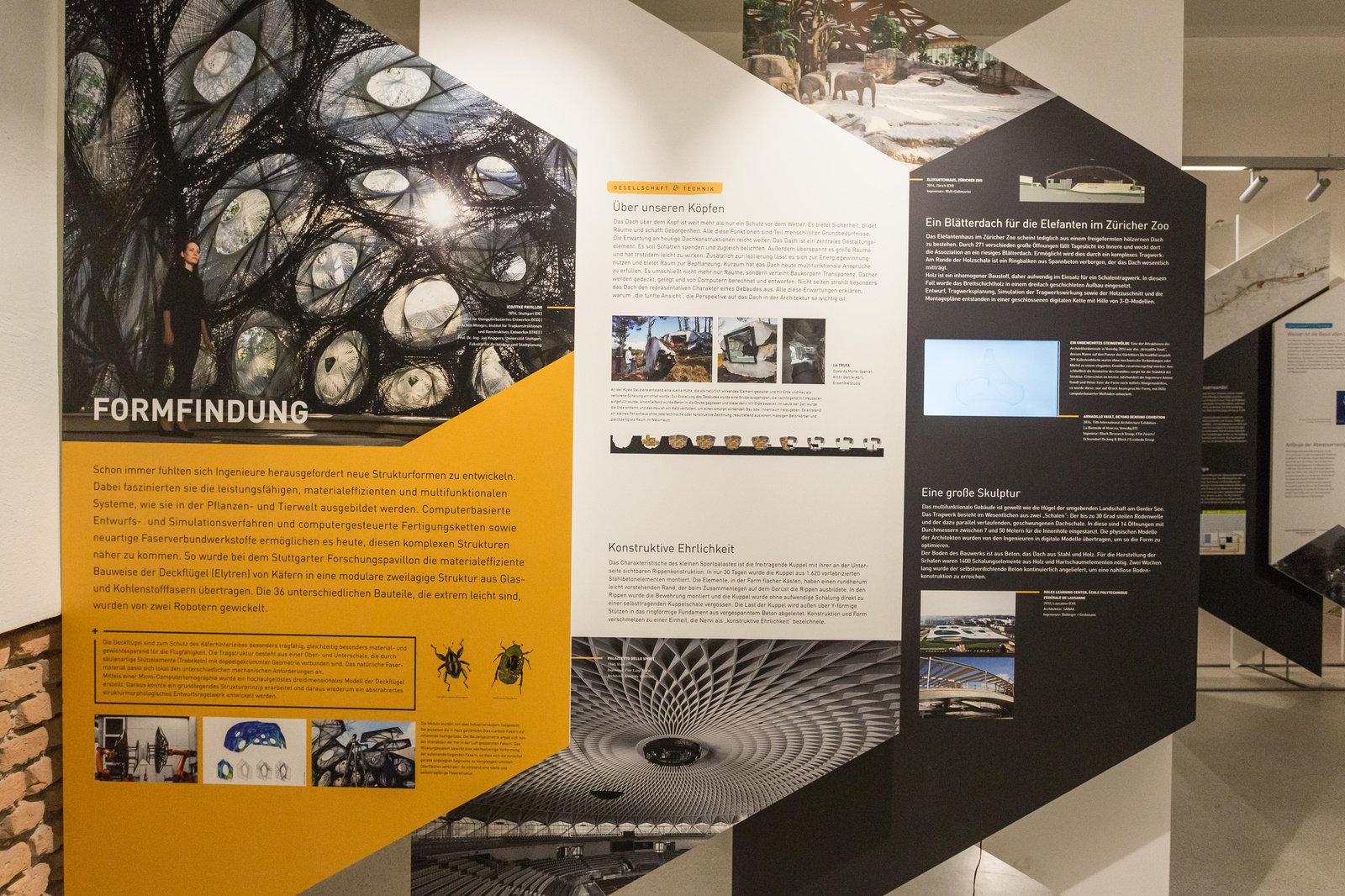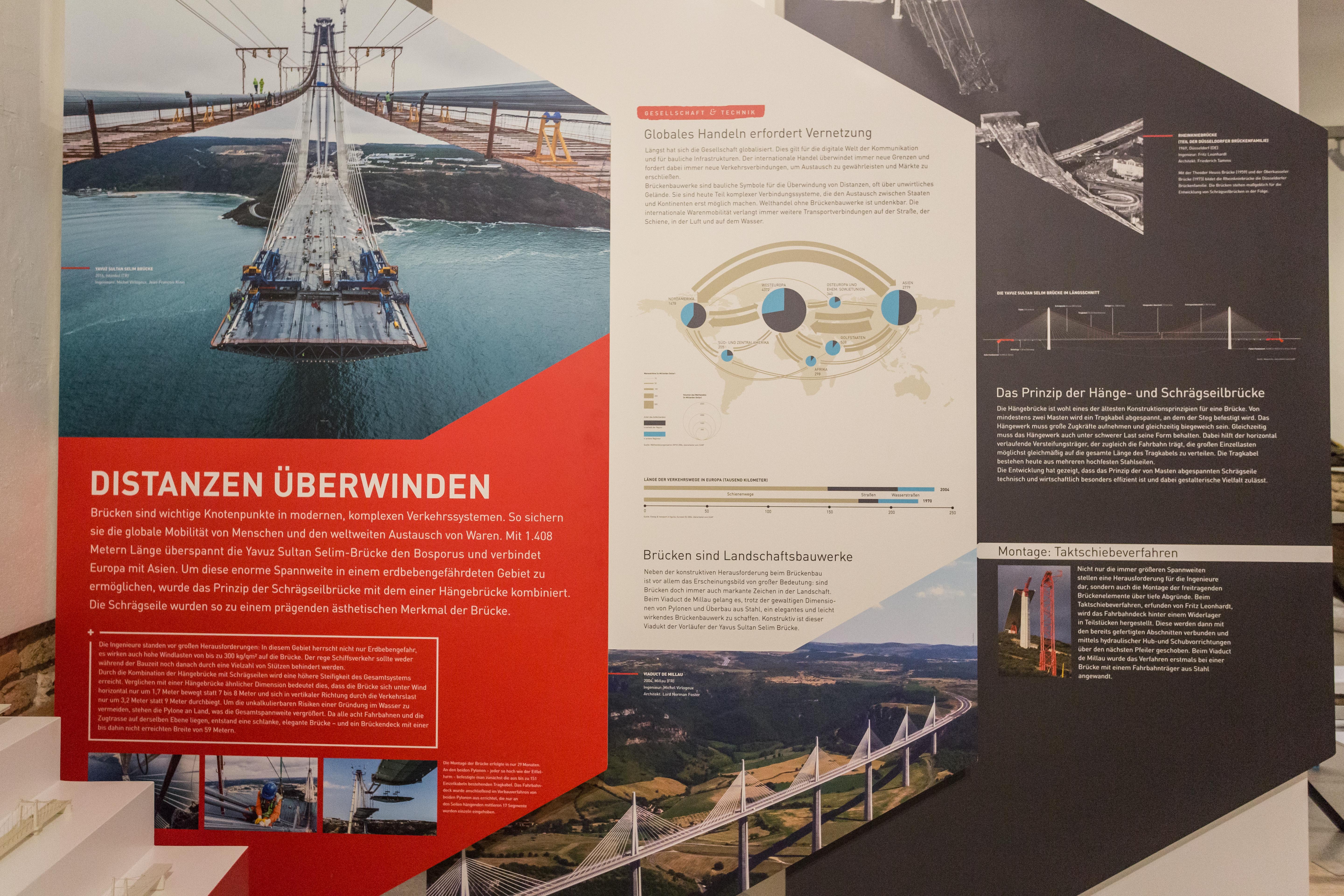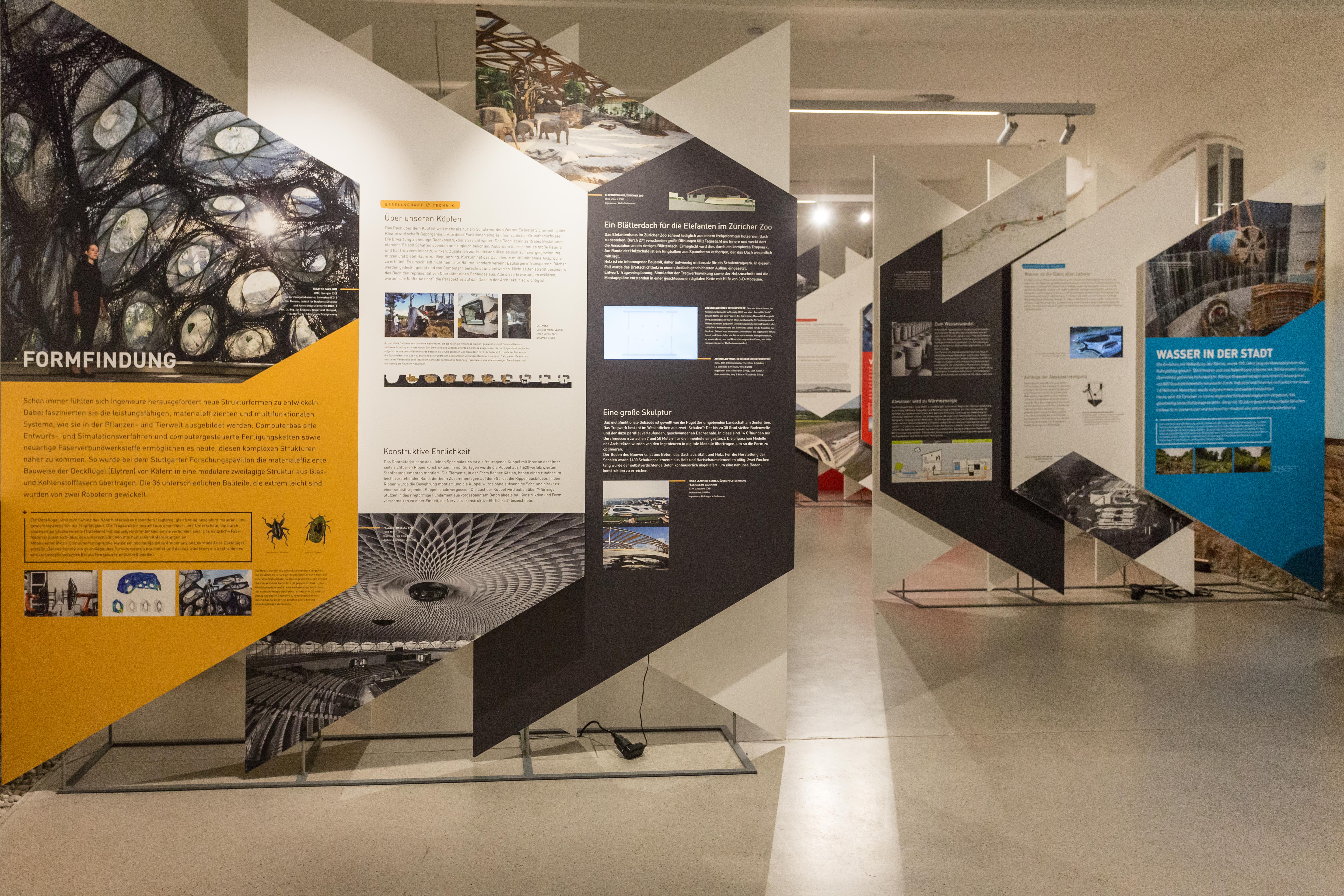 Die Ausstellung entwirft ein Panorama ausgehend von der historischen Entwicklung des Berufs über die Gegenwart bis in die Zukunft. Protagonisten und Meilensteine, klassische Bauaufgaben und Erfindungen dokumentieren die gesellschaftliche, kulturelle und technische Relevanz des Bauingenieurwesens. Fotos, Grafiken und Modelle erläutern den Bauprozess spektakulärer und innovativer Projekte aus den Bereichen: